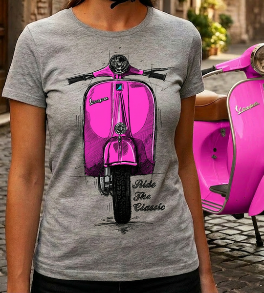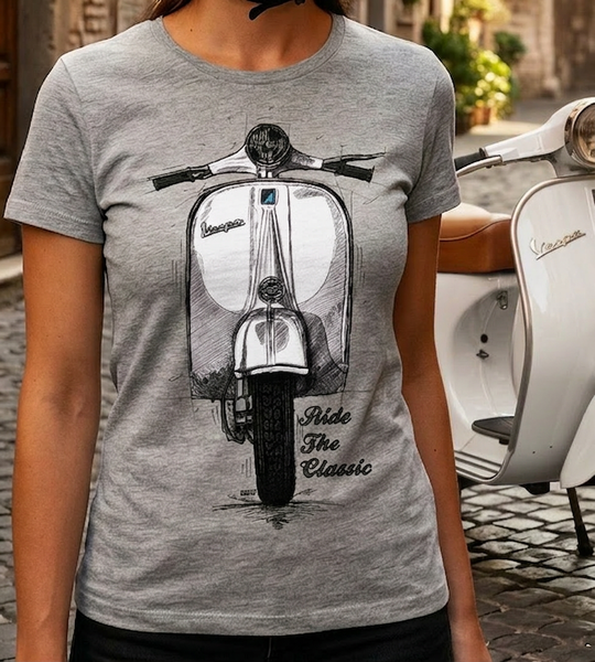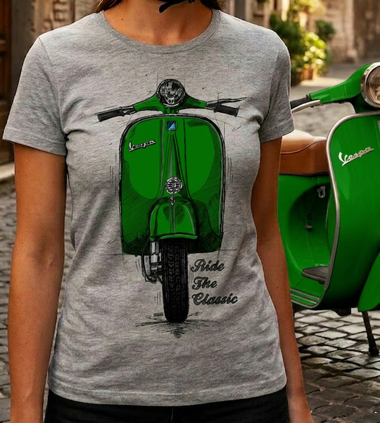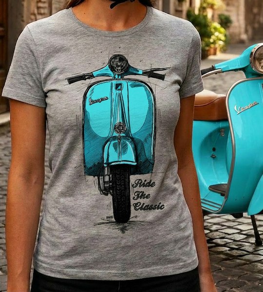 Ride The Classic Vespa. Women T-shirt in Heather Grey Colour
